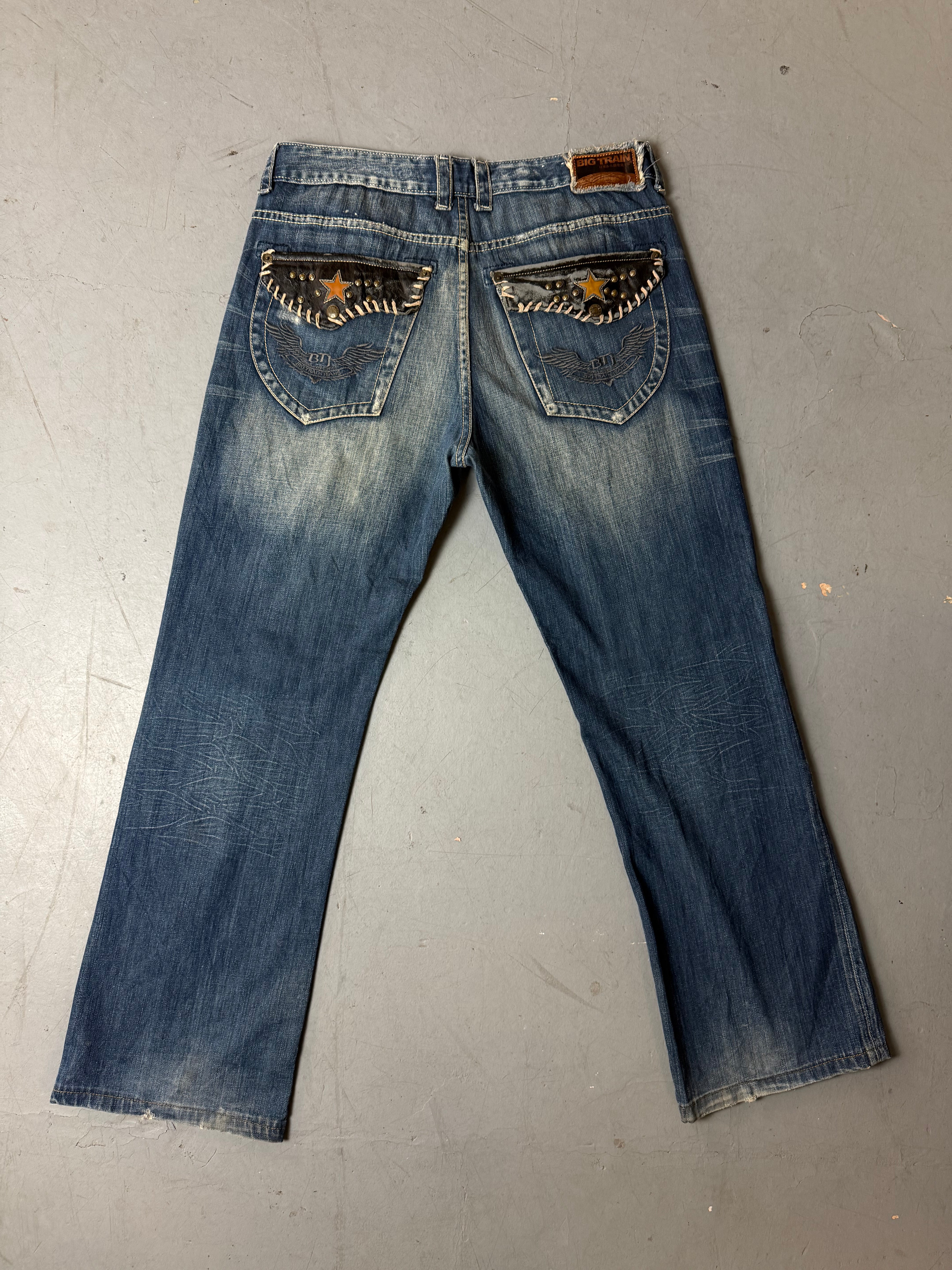 Vintage Big Train Baggy Jeans with Studded Back Pockets L