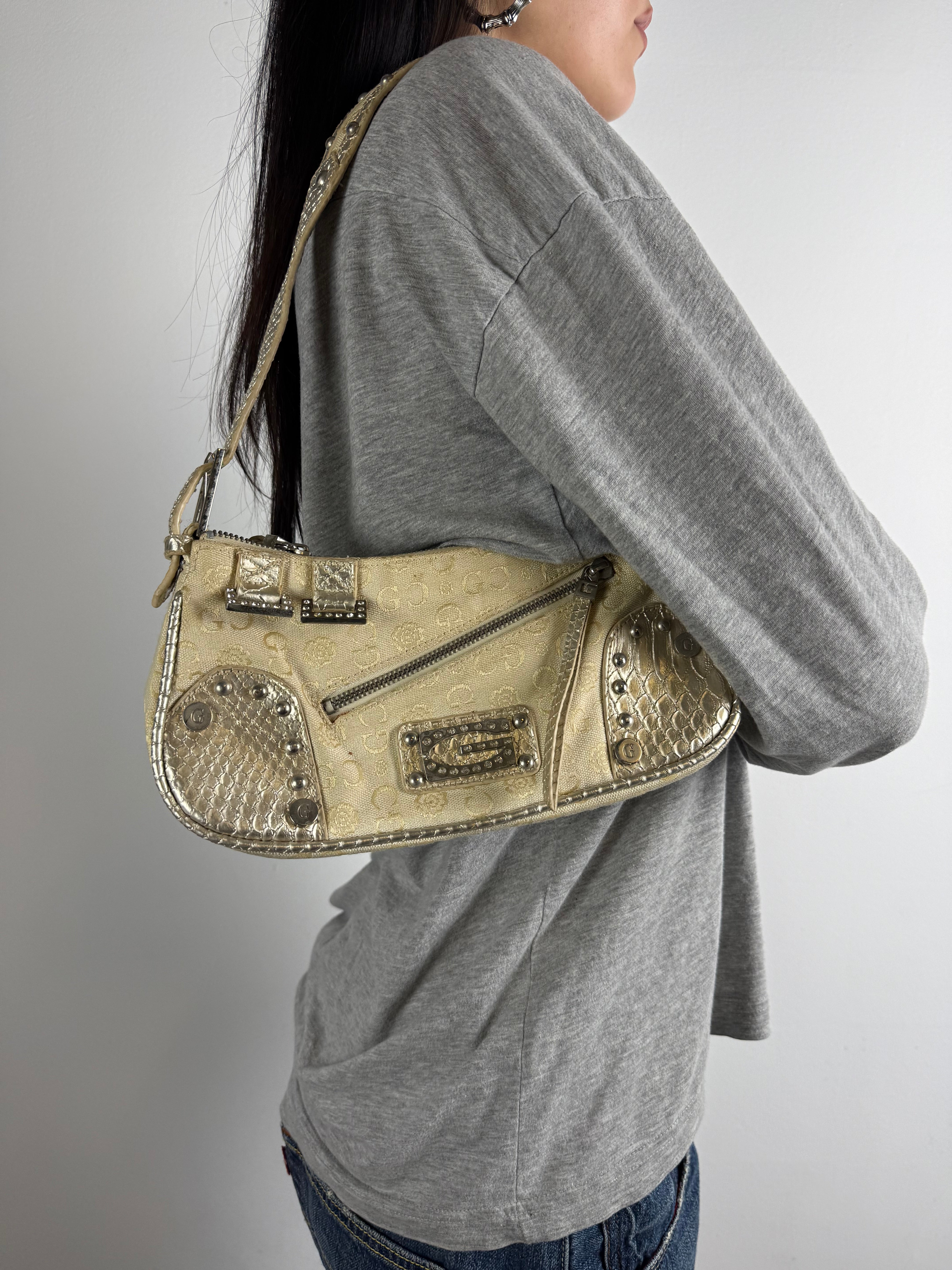 Vintage Gussaci Y2K Gold Mini Baguette Bag