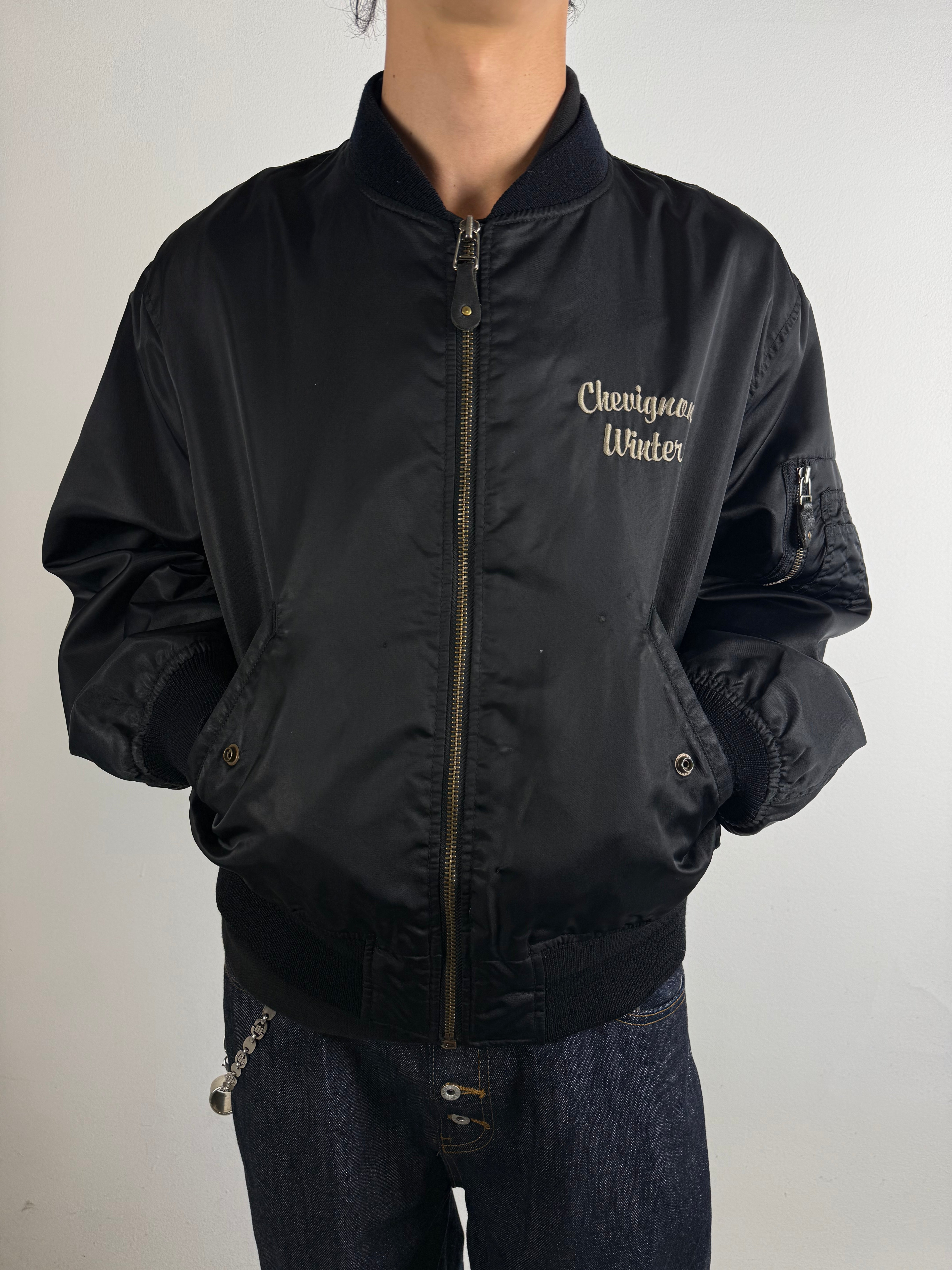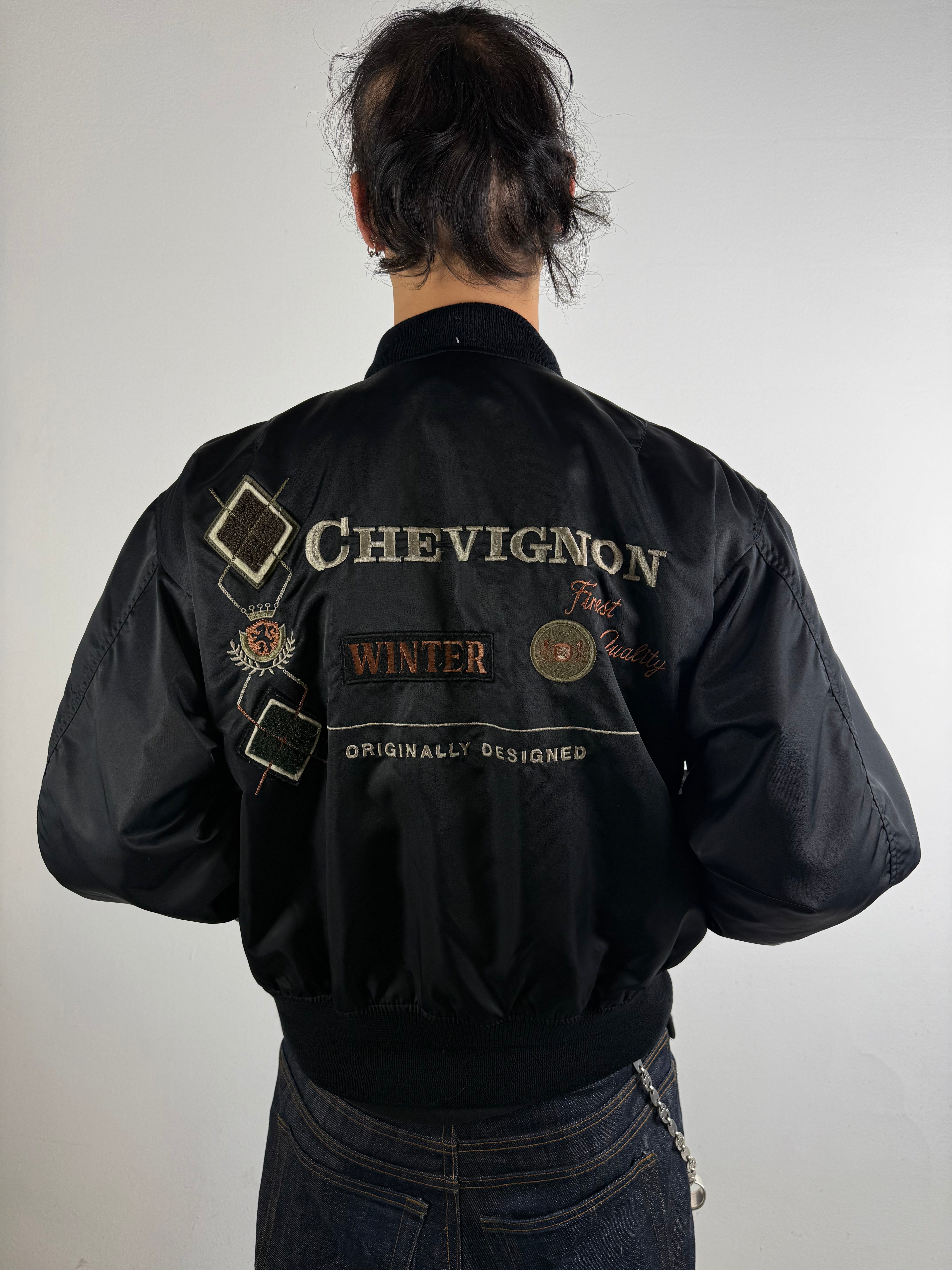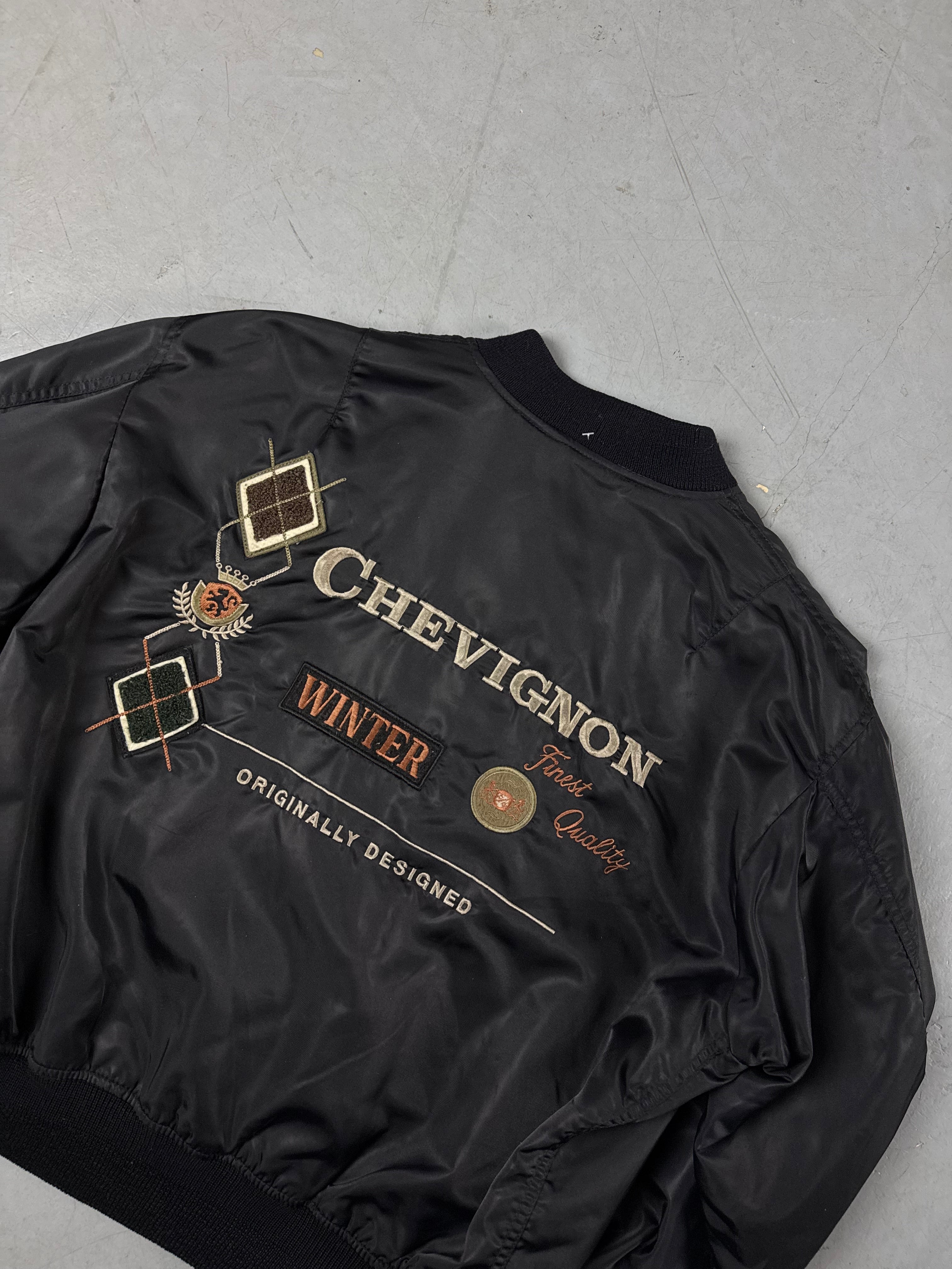 Vintage Chevignon Black Bomber Jacket L