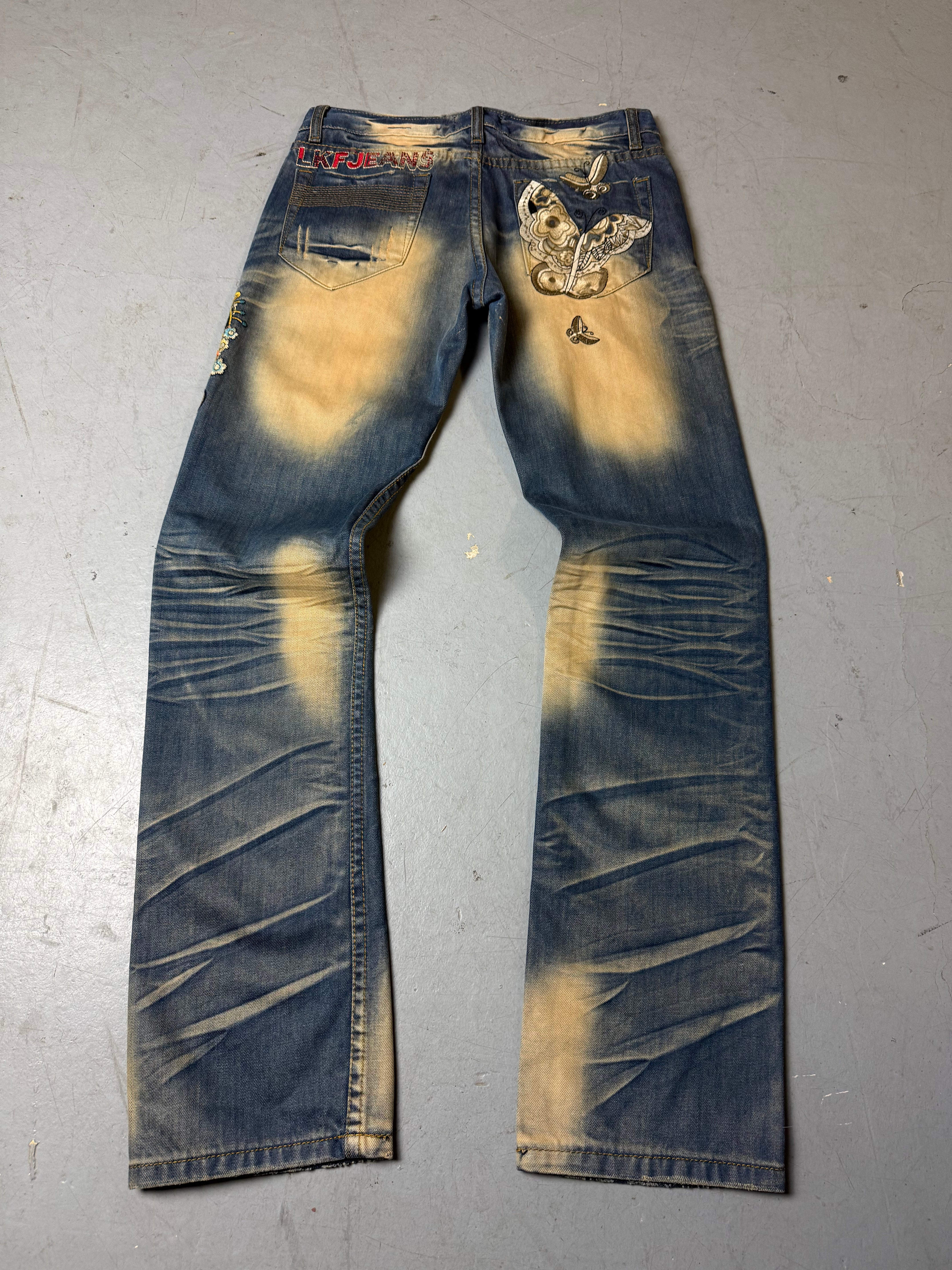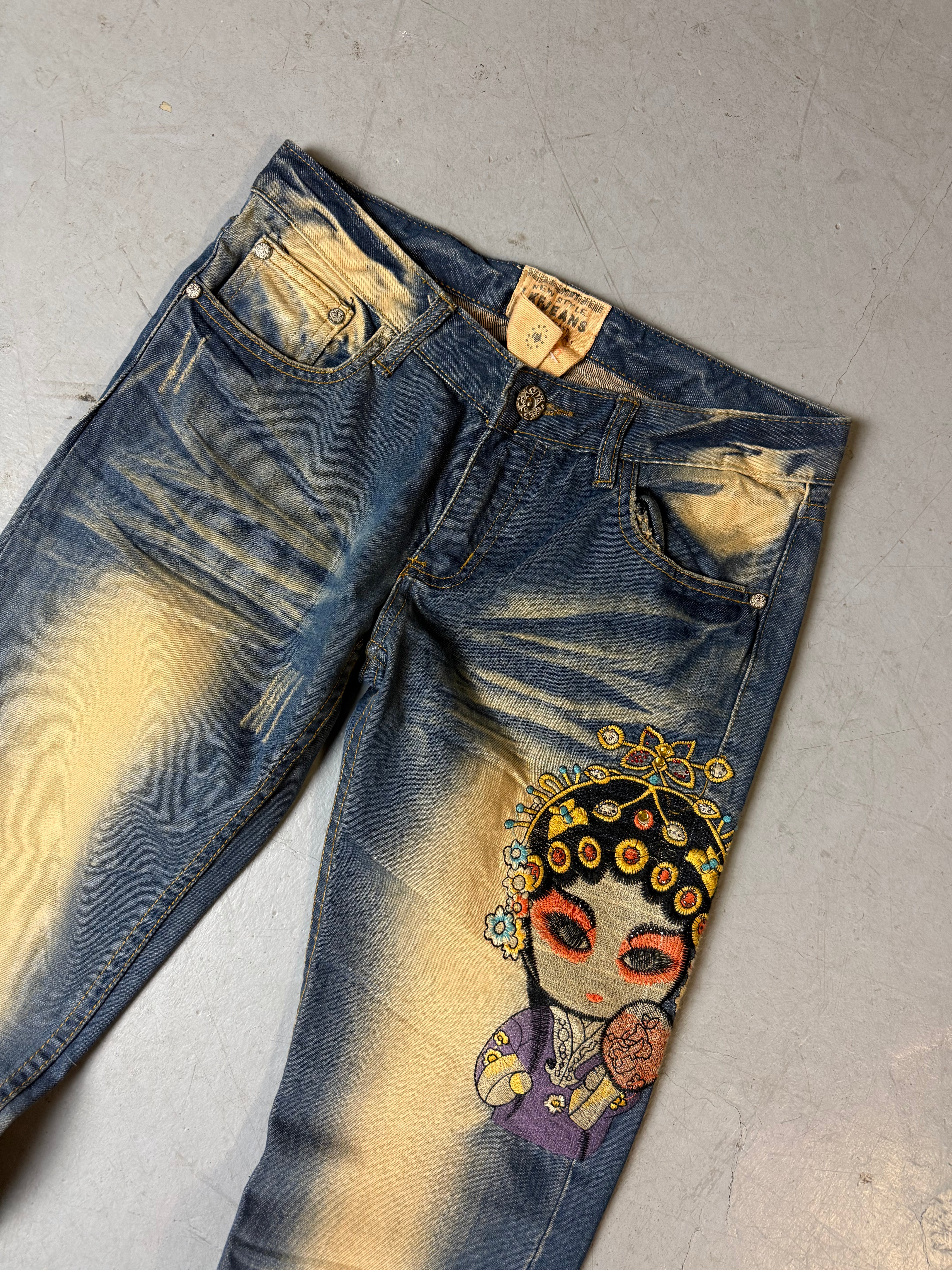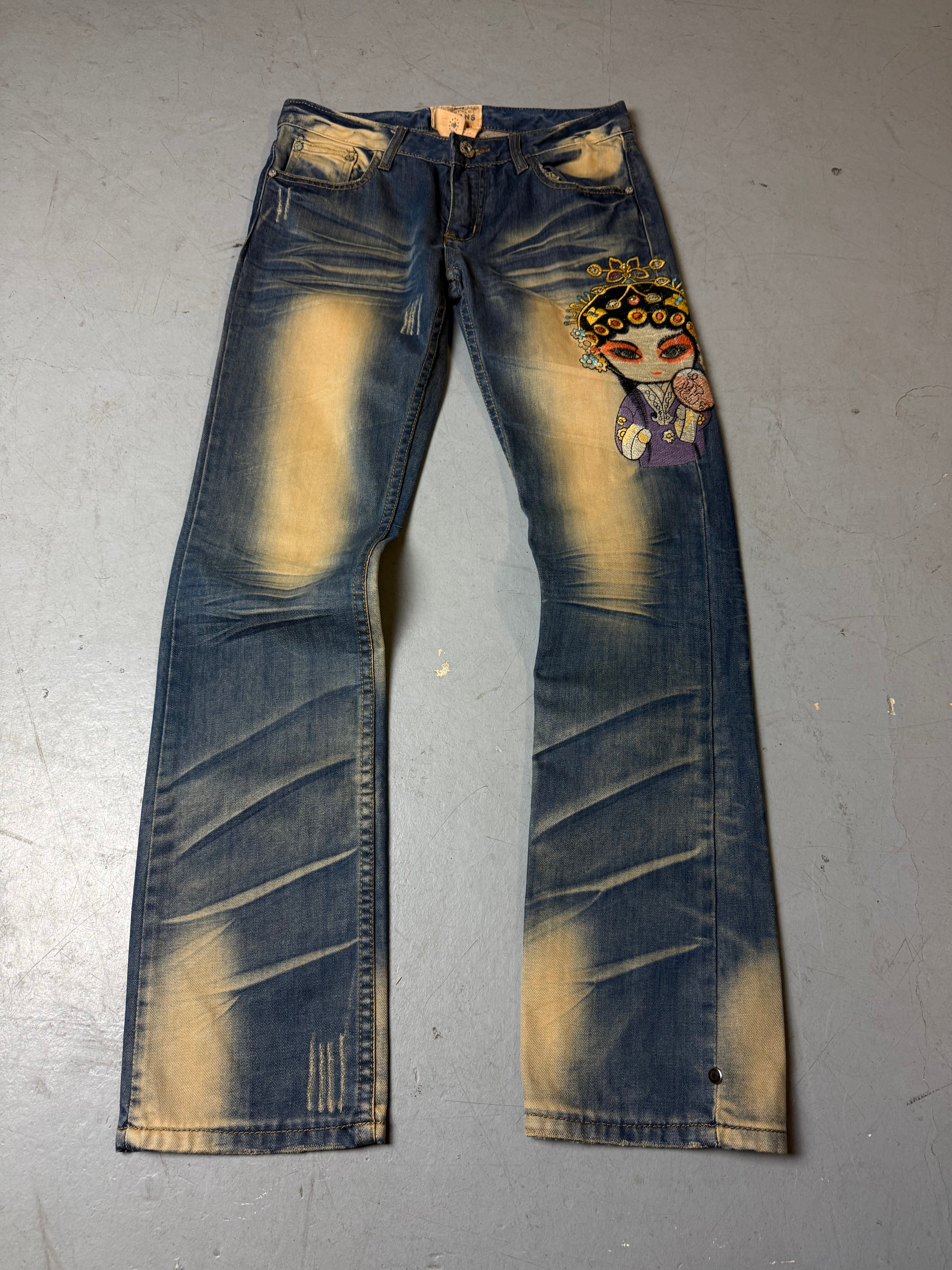 Vintage New Style Washed Out Jeans with Stitching S/M