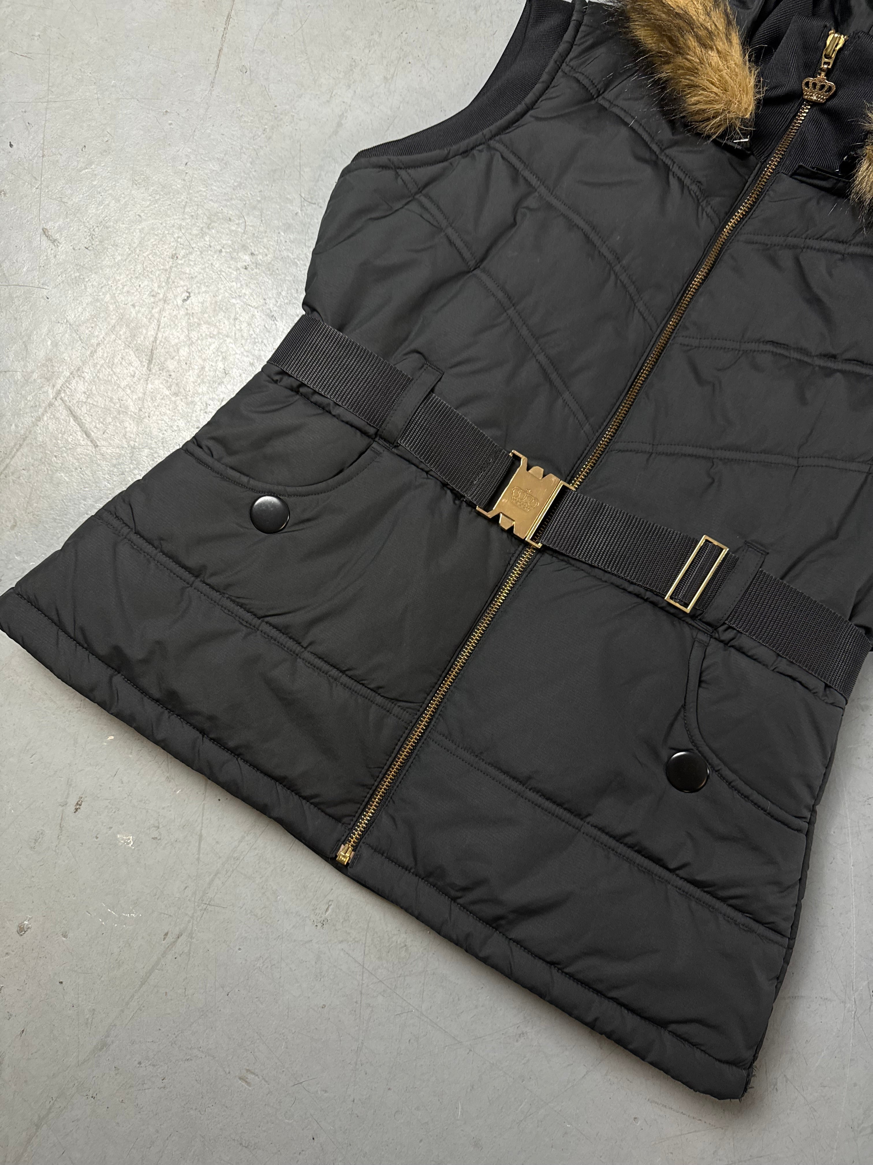 Vintage Adidas x Miss Elliott Respect Me Black Fur Puffer Vest S/M