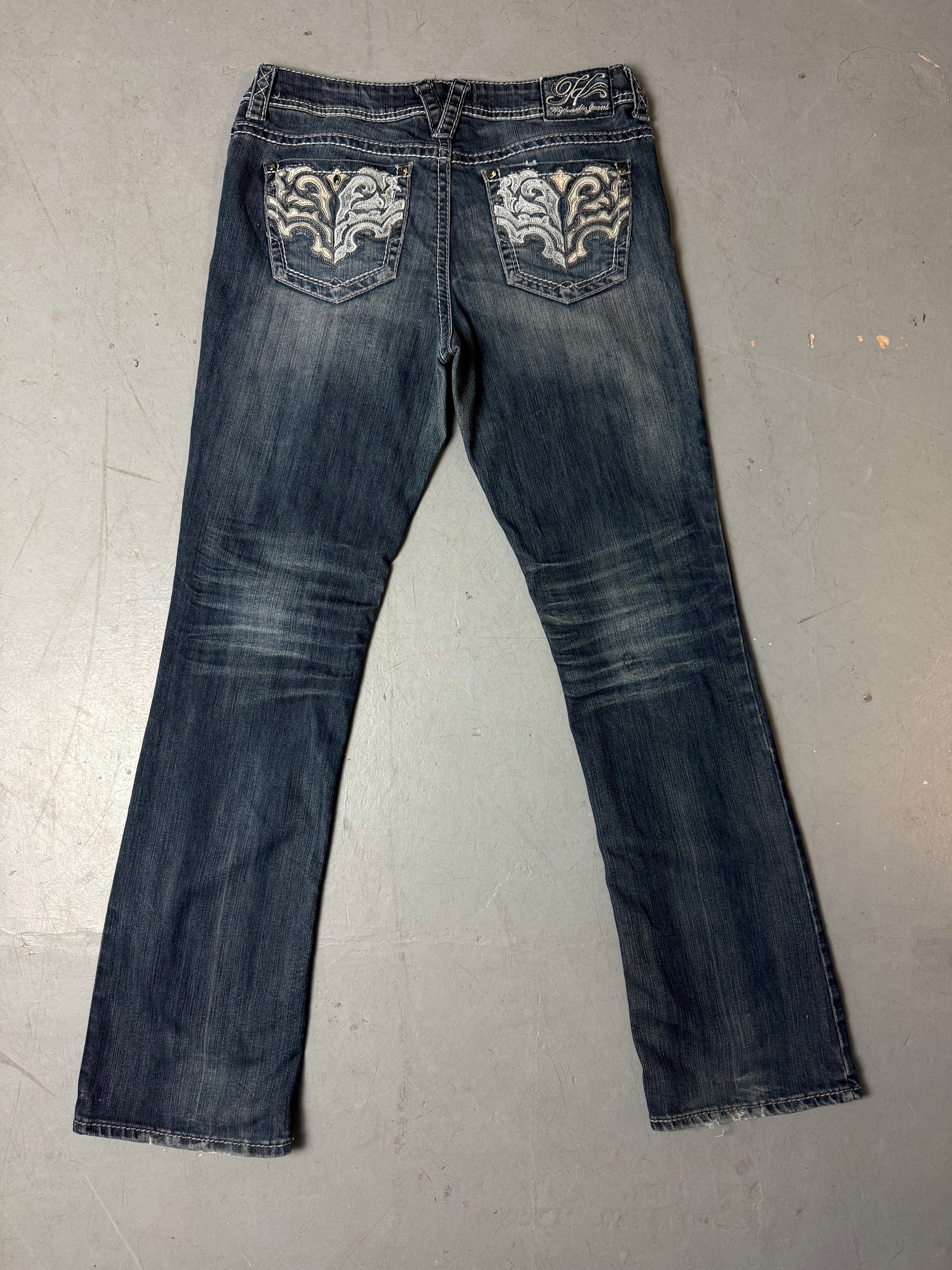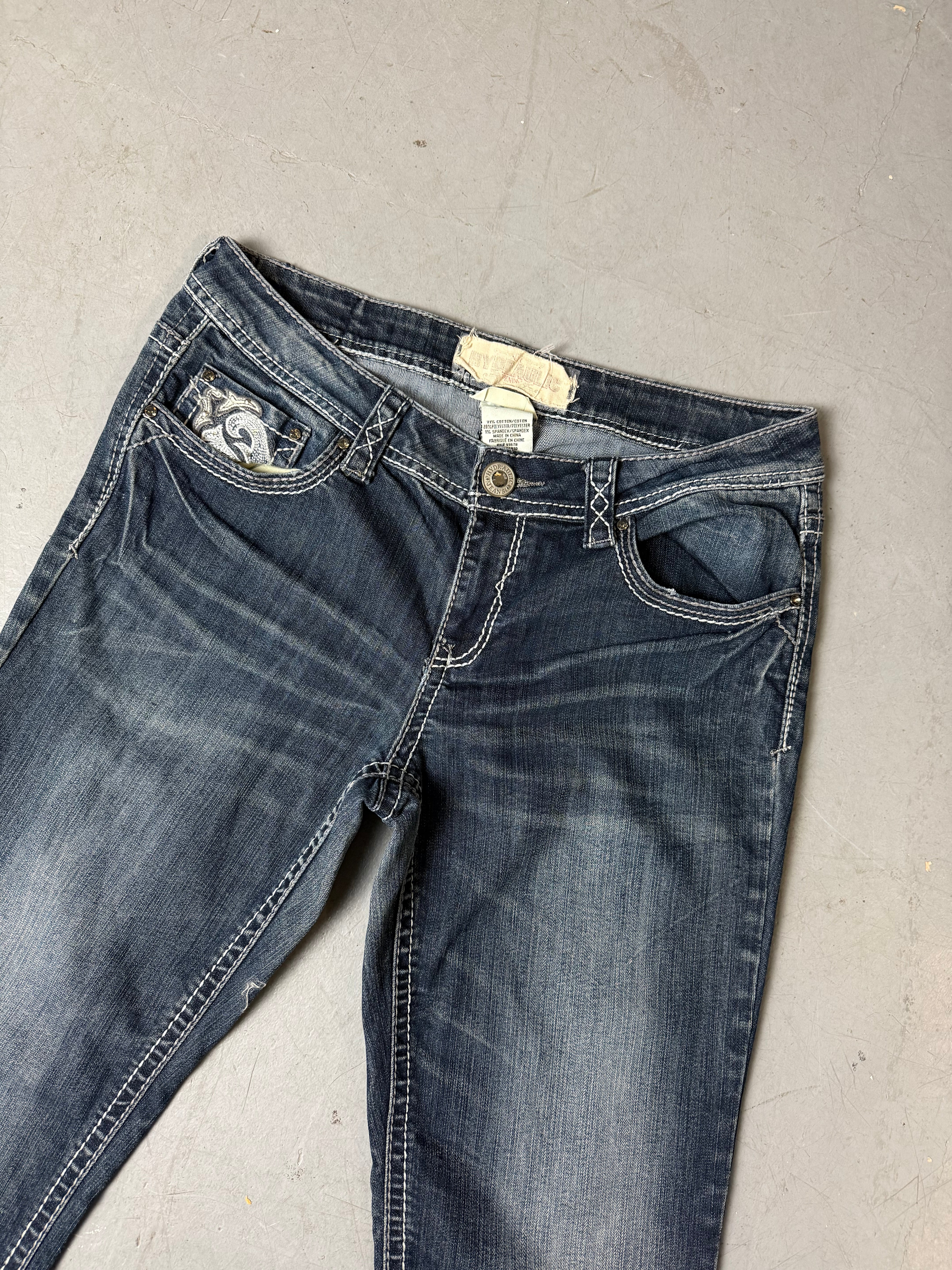 Vintage Hydraulic Bootcut Denim with Tribal Backprint M/L