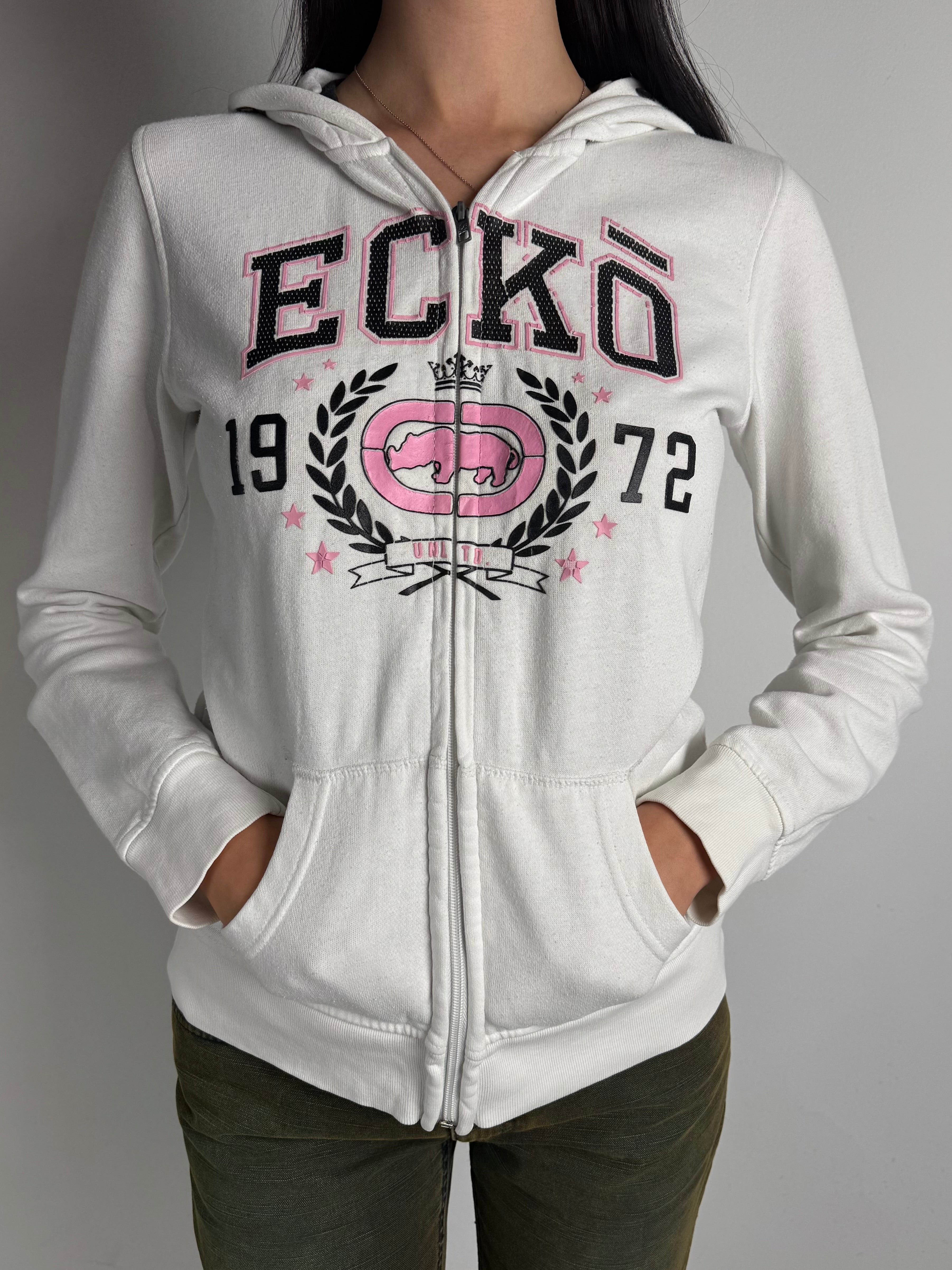 Vintage Ecko Unltd. White and Pink Zip Up Hoodie S/M