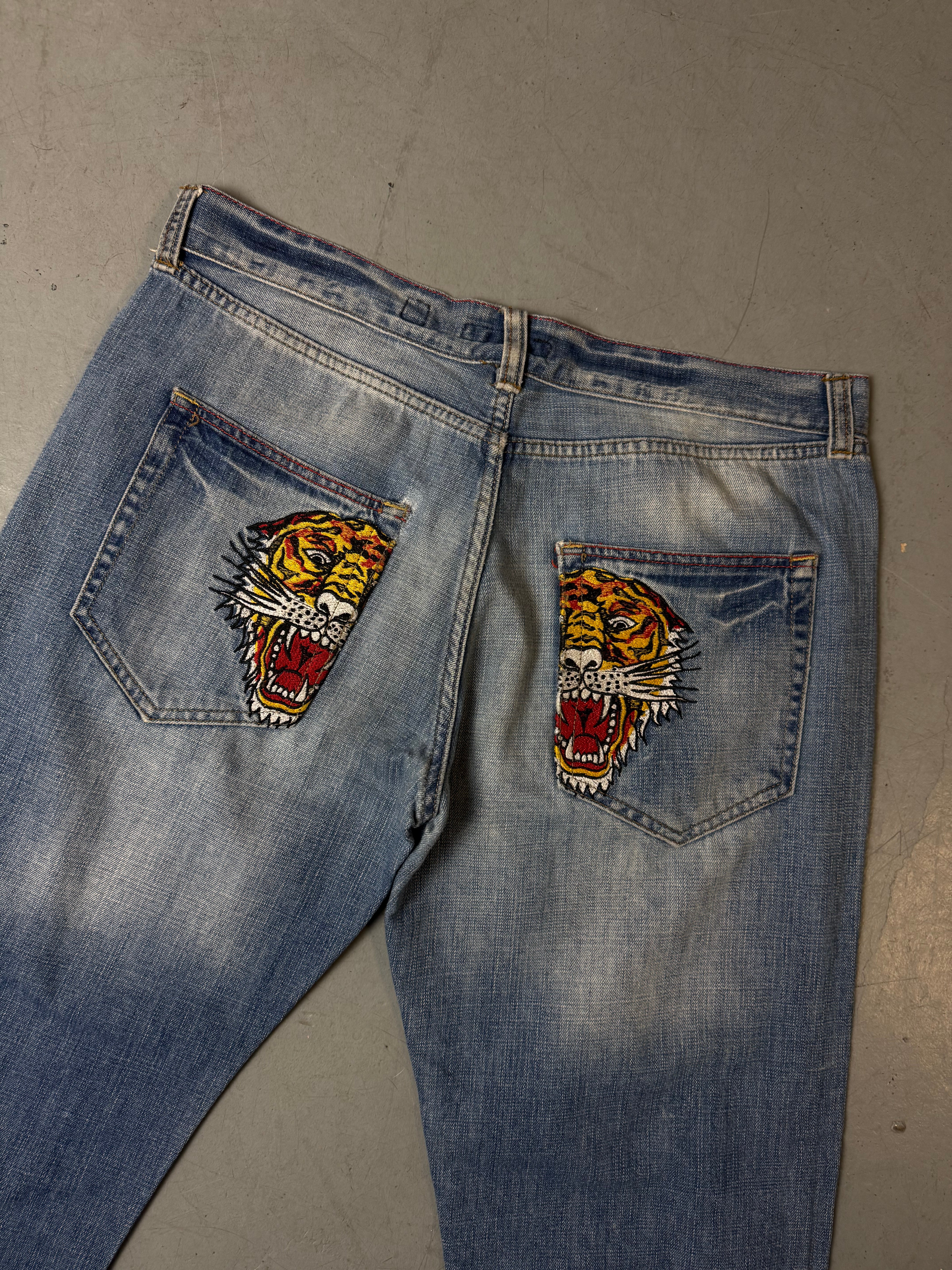 Vintage Ed Hardy Short Denim with Tiger Backprint XL