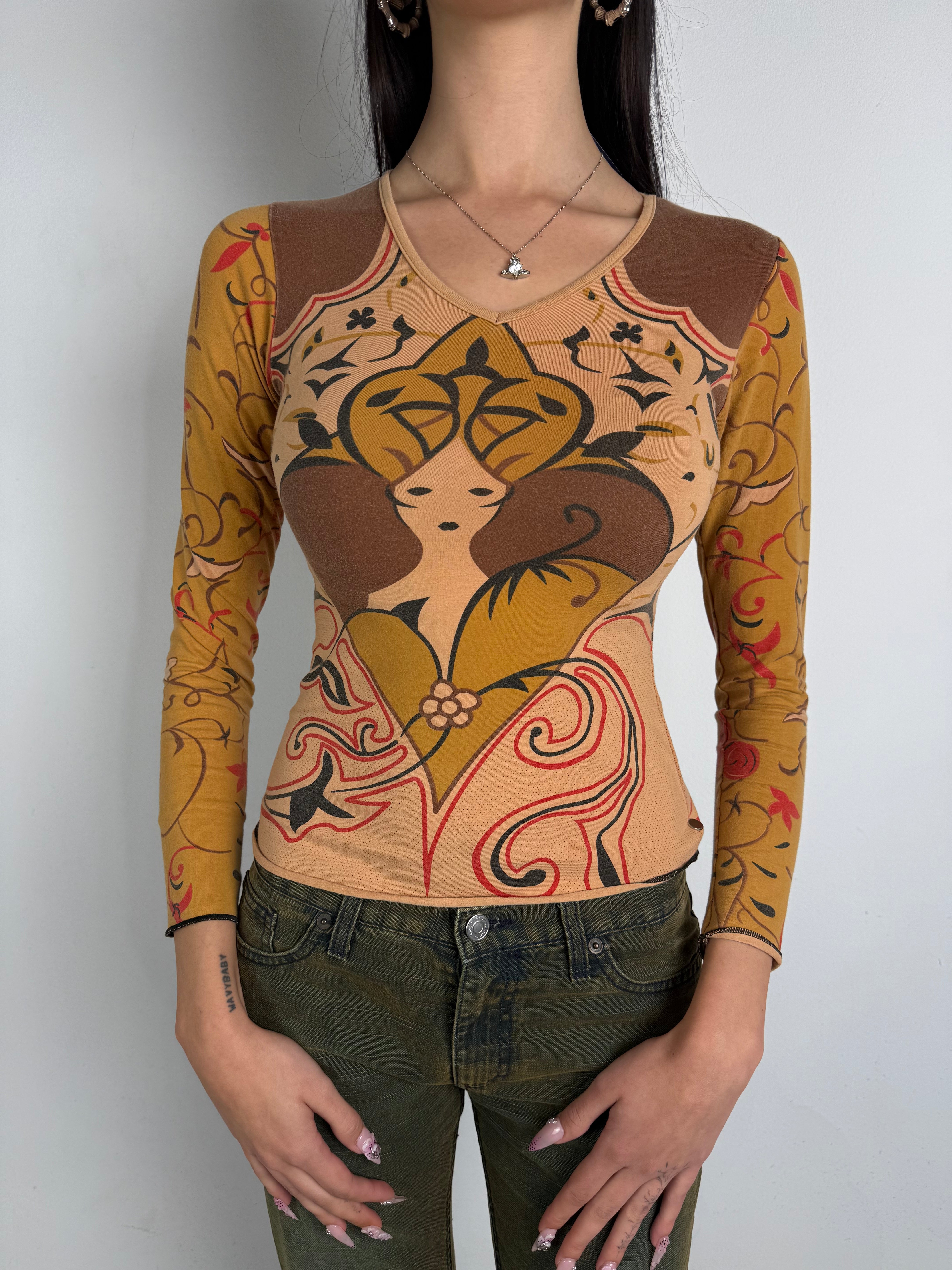 Vintage Top. Langarm Oberteil . Damen Oberteil. longsleeve. Girls top. Sommer top. Orange top. Y2K. 2000s.