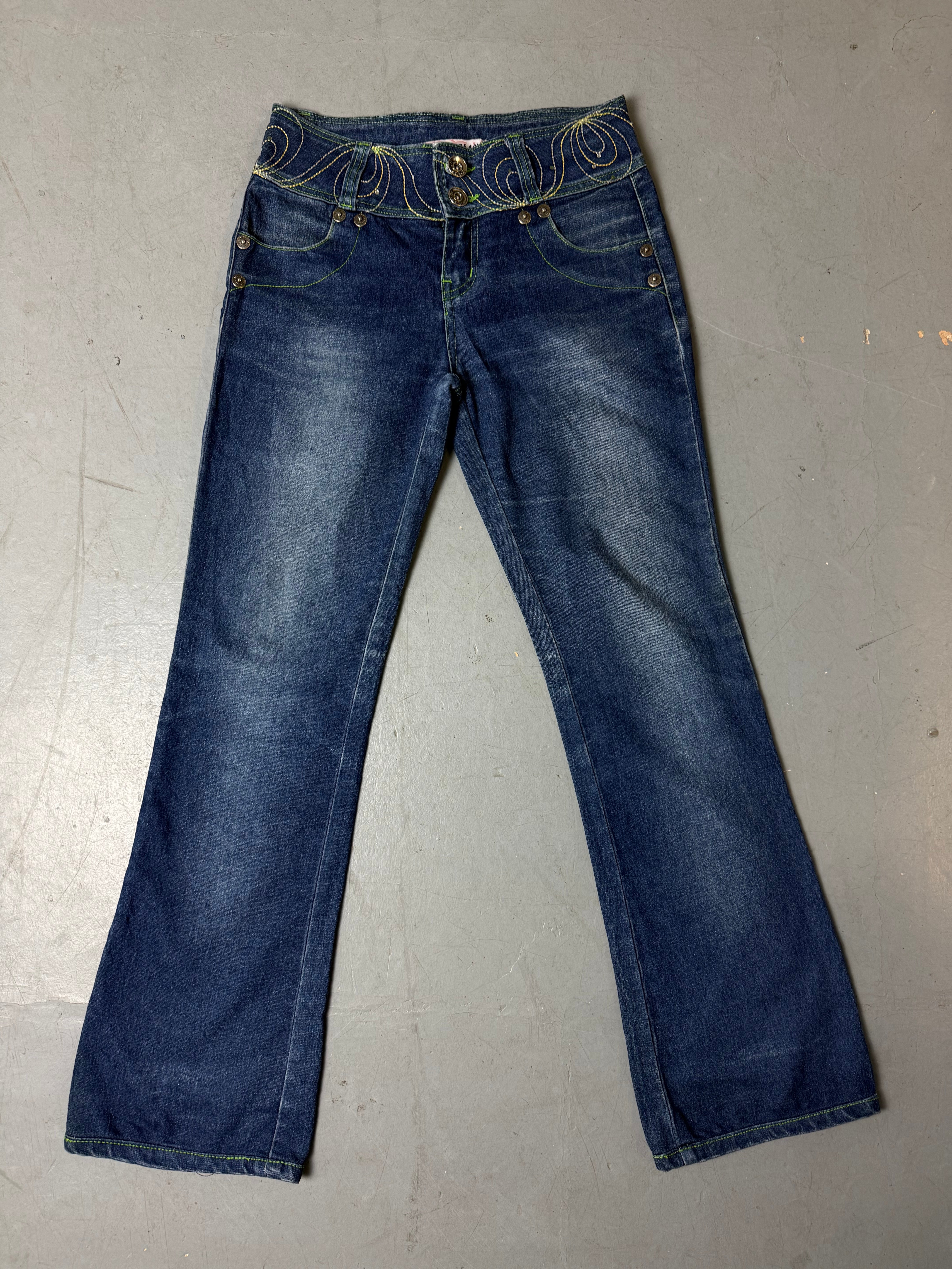 Vintage Bootcut Jeans with Colorful Stitching XS/S