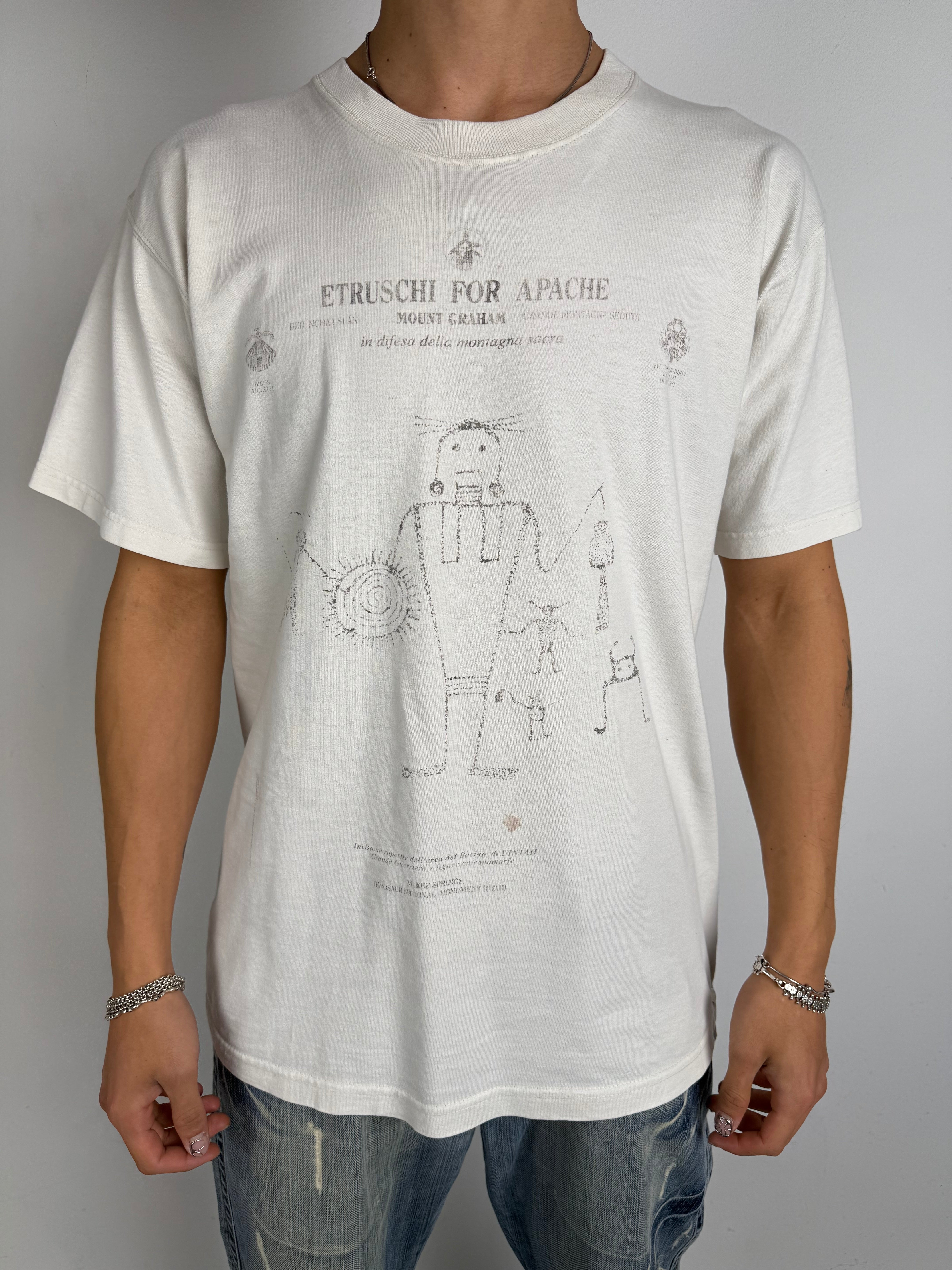 Vintage White Latin Printed T-Shirt L