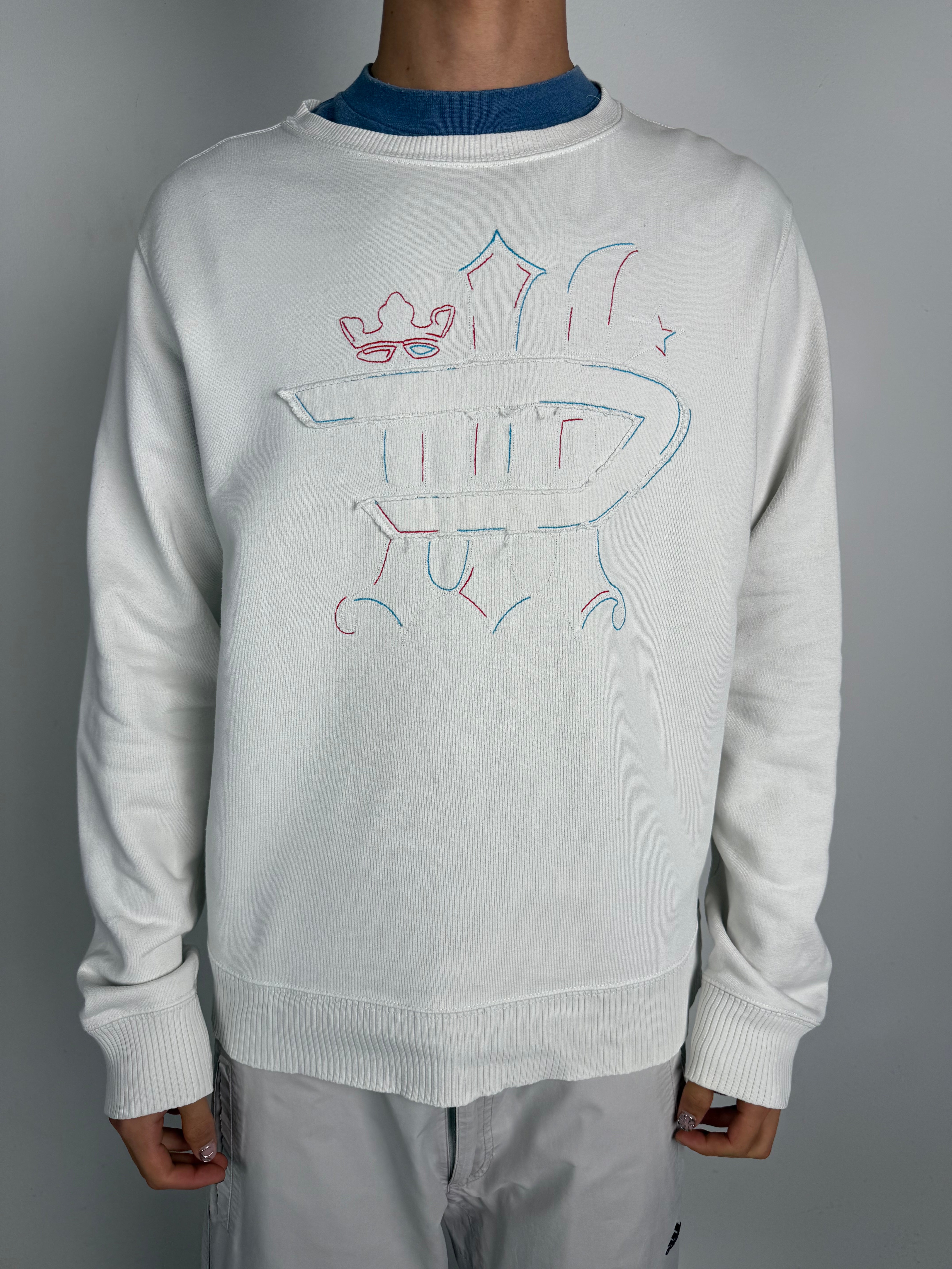 Vintage Diesel. Diesel. Sweater. White Sweather. Vintage Sweater. Printed Hoodie. White. Stitched Sweater.