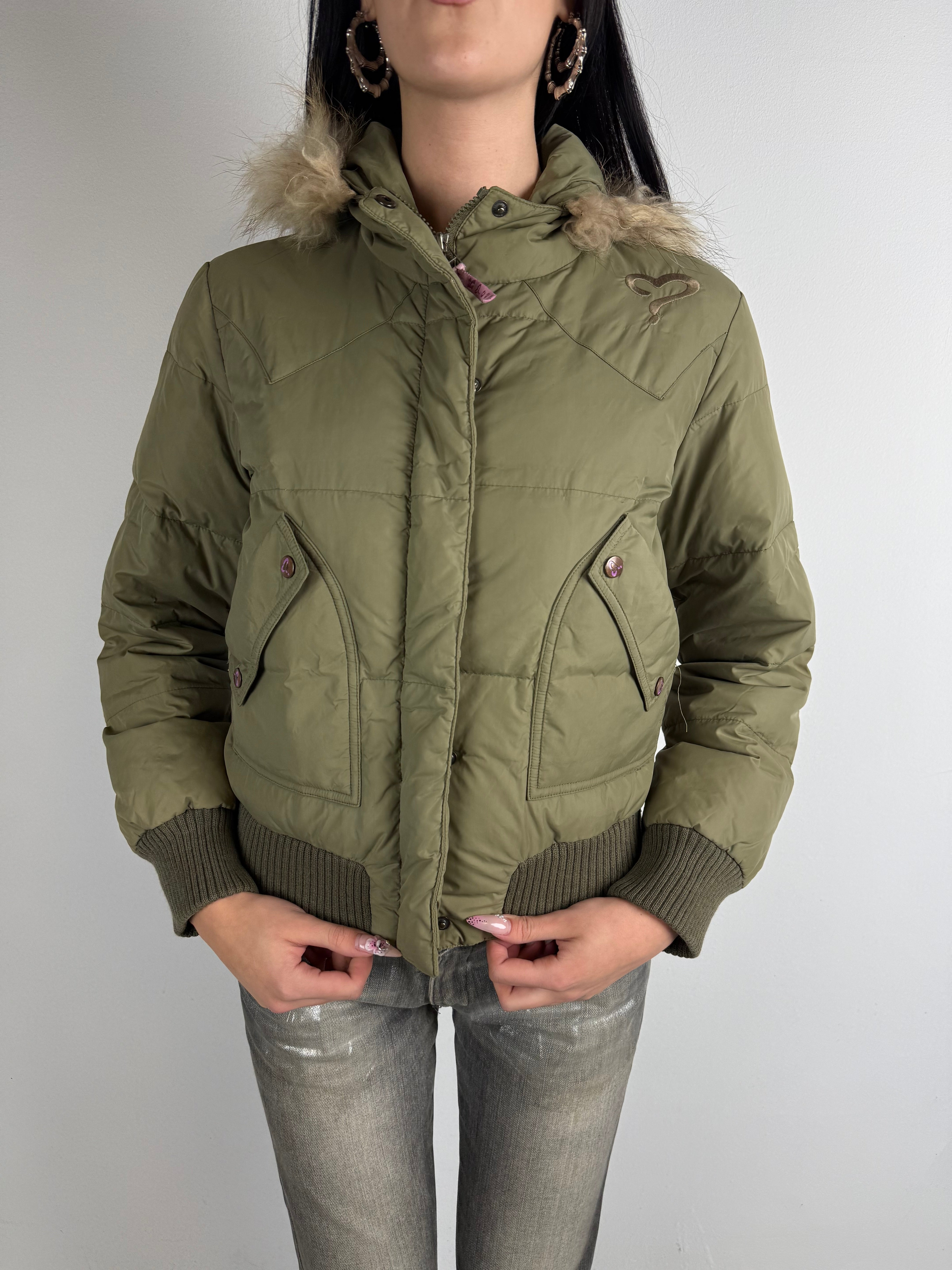 Winterjacke. Damenjacke. Damen Oberteil. Jacke. Y2K. Pufferjacke. bomber jacke. Grün. 2000s. Daunenjacke. Winterjacke mit Fell Kaputze. Fur hood.